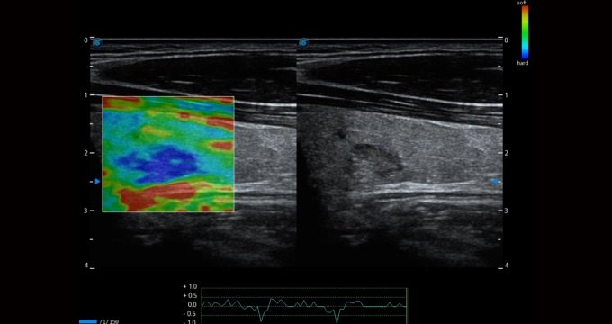Die C-xlasto Bildgebung erlaubt eine umfassende quantitative Elastizitätsanalyse, bei der das System schnell das Dehnungsverhältnis berechnet und ungewöhnlich harte oder weiche Veränderungen im Weichteilgewebe anzeigt. Gleichzeitig wird die Funktion durch mehrere Schallköpfe unterstützt, was hochgradig konsistente, quantitative Elastizitätsergebnisse mit guter Reproduzierbarkeit sicherstellt.