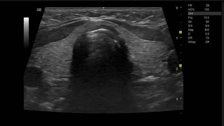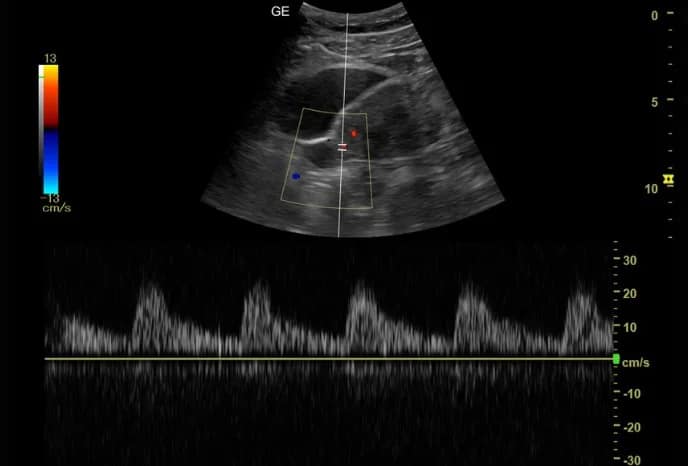 Whizz optimiert kontinuierlich die Helligkeit, den Kontrast und die Gleichmäßigkeit von B-Mode-Bildern beim Scannen verschiedener Gewebe. Whizz im PW/CW-Doppler-Modus optimiert die Spektraldaten. Passt die Geschwindigkeitsskala/PRF (nur Live-Bildgebung), die Basislinienverschiebung und die Umkehrung (falls voreingestellt) automatisch an. Bei Deaktivierung ist das Spektrum noch optimiert.